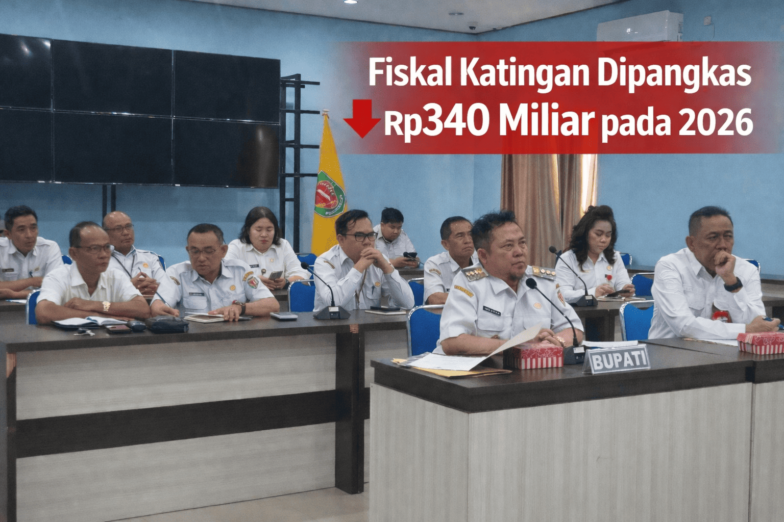Dalam dua tahun terakhir, Katingan kehilangan dana transfer dalam jumlah besar. Pada 2025, pemangkasan mencapai sekitar Rp98 miliar, lalu melonjak drastis pada 2026 menjadi Rp340 miliar. Total pengurangan anggaran menyentuh sekitar Rp445 miliar—angka yang signifikan bagi daerah dengan kapasitas fiskal terbatas.