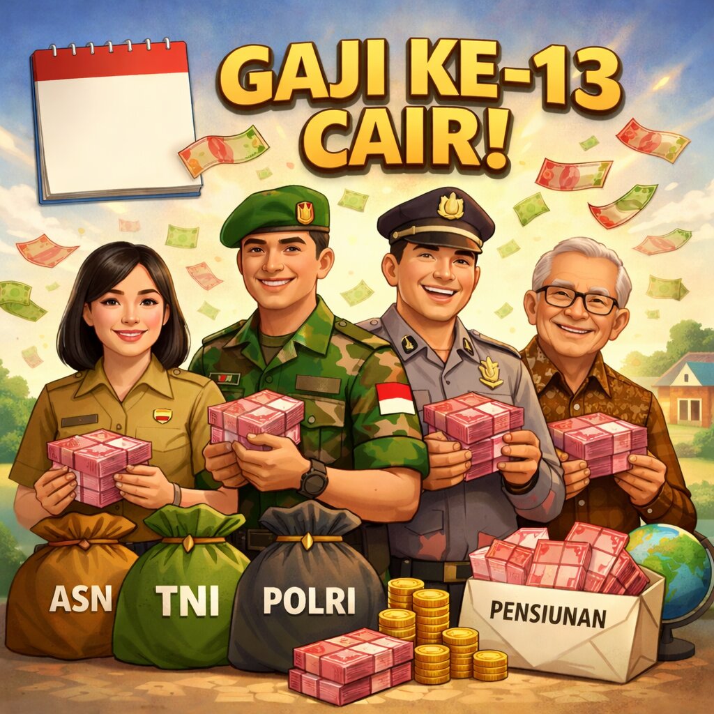 AKARTA – Pemerintah memastikan gaji ke-13 bagi Aparatur Sipil Negara (ASN), prajurit TNI, anggota Polri, hingga pensiunan akan mulai dicairkan pada Juni 2026. Kebijakan ini menjadi “suntikan” penting untuk menjaga daya beli sekaligus menopang kebutuhan masyarakat di momen krusial pertengahan tahun.