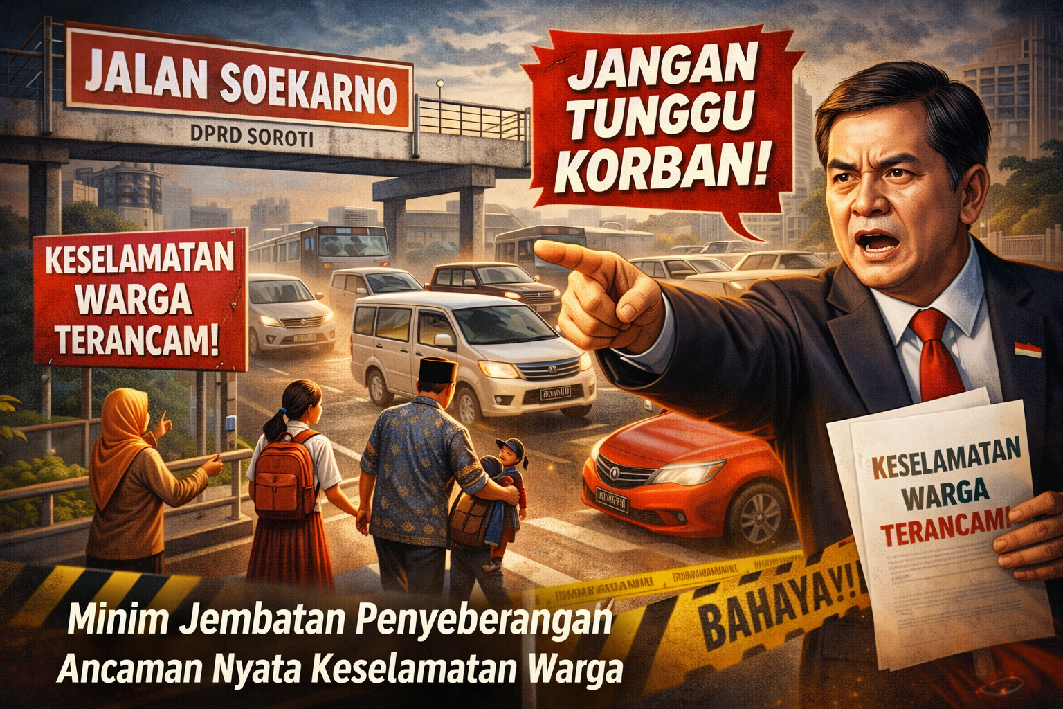 Palangka Raya – Minimnya jembatan penyeberangan di Jalan Soekarno kini tak lagi sekadar persoalan fasilitas, tetapi telah berubah menjadi ancaman nyata bagi keselamatan warga. DPRD menilai, kondisi ini berpotensi memakan korban jika terus dibiarkan.