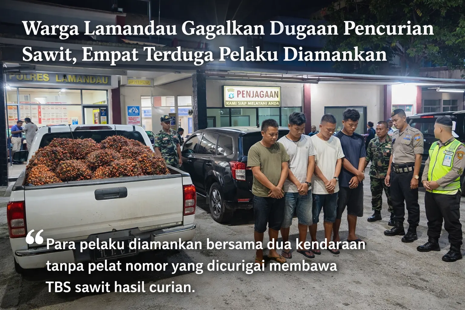 Kecurigaan warga muncul karena aktivitas kendaraan dinilai tidak wajar di sekitar lokasi perkebunan. Tindakan cepat tersebut berujung pada pengamanan para terduga pelaku sebelum aksi diduga berkembang lebih jauh.