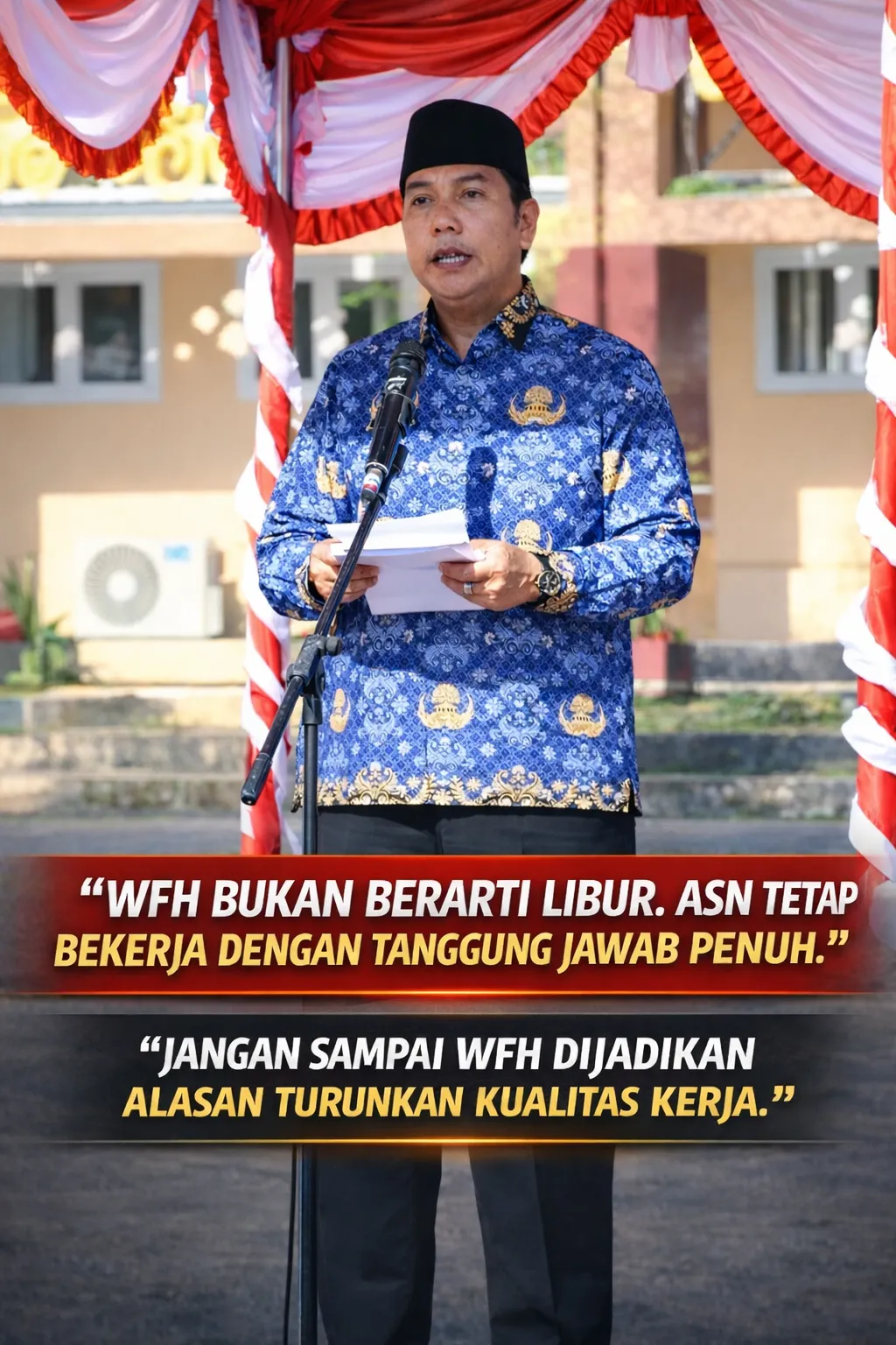 “Jangan sampai WFH dijadikan alasan untuk menurunkan kualitas kerja. Justru di situ integritas ASN diuji,” ujarnya.