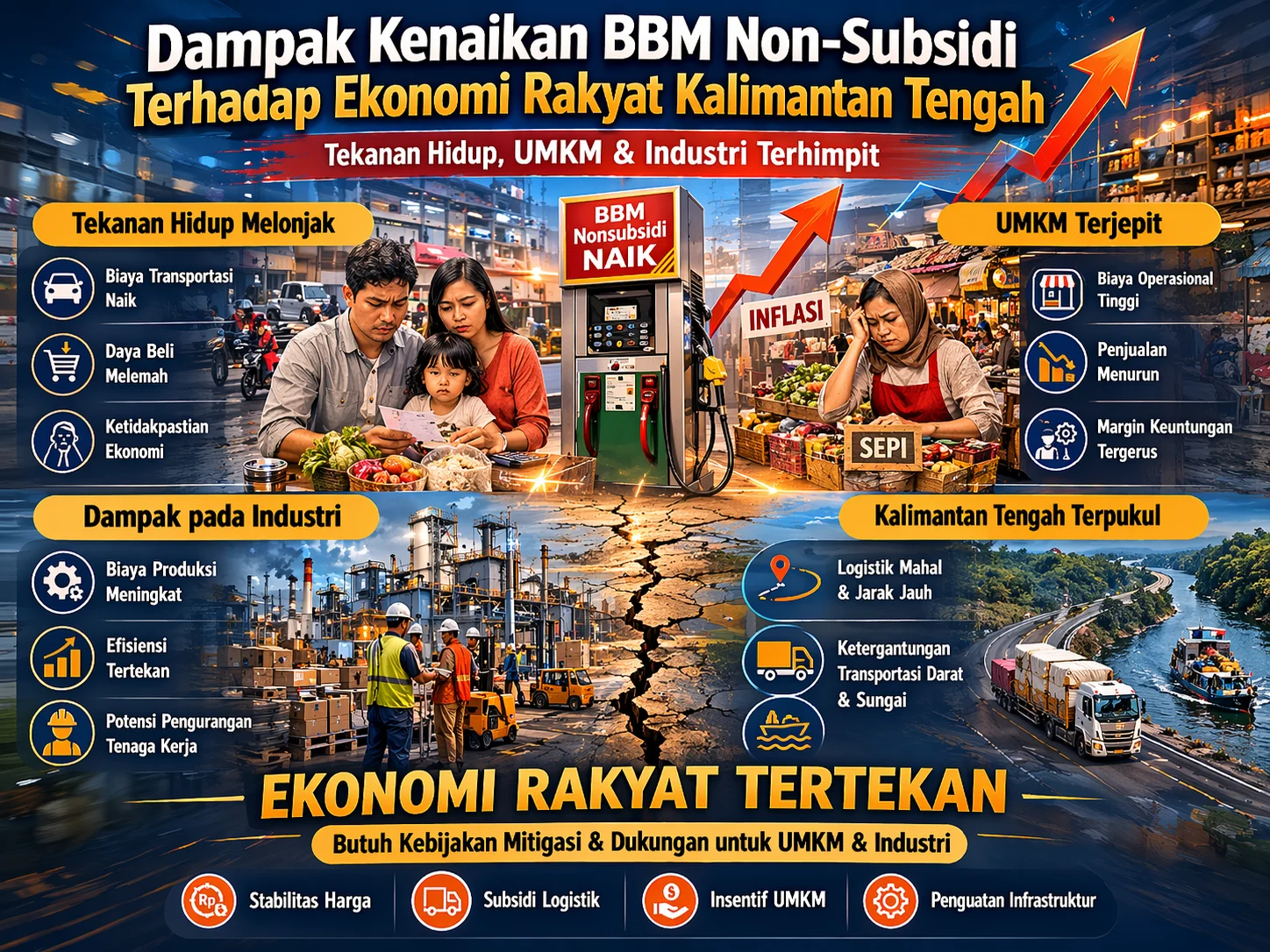 Kenaikan harga BBM non-subsidi bukan sekadar isu energi, melainkan pemicu tekanan ekonomi berlapis yang menjalar dari sektor makro hingga ke dapur rumah tangga. Dalam konteks Kalimantan Tengah—wilayah dengan karakter geografis luas dan ketergantungan tinggi pada distribusi darat—dampaknya menjadi lebih kompleks dan terasa langsung.