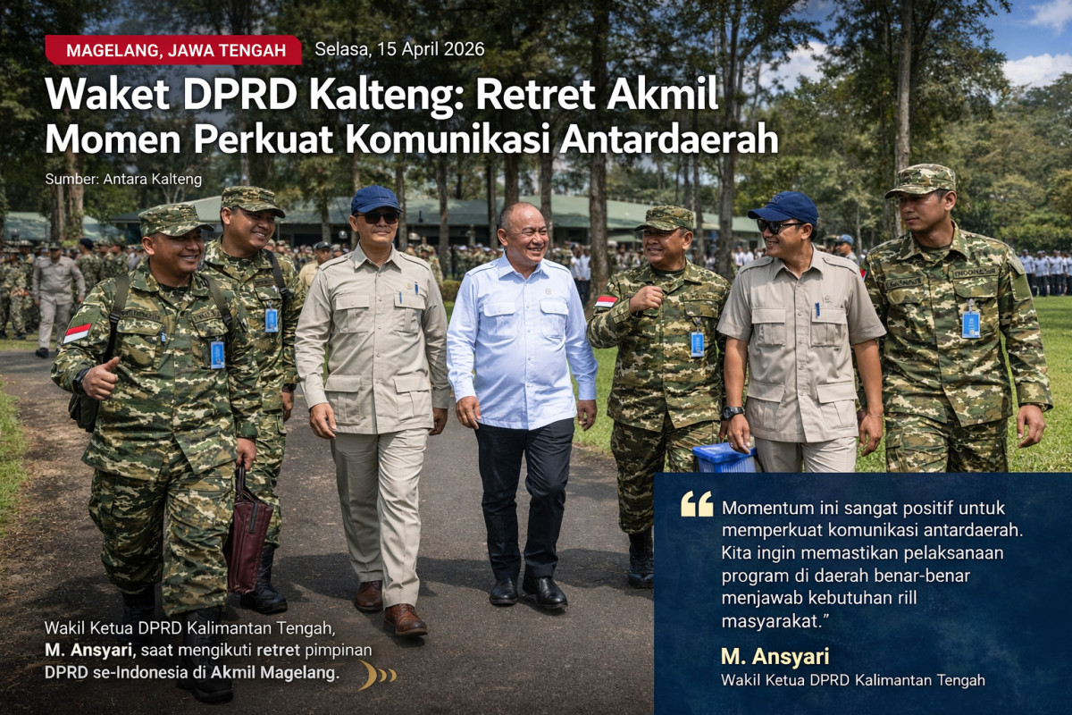 Palangka Raya — Wakil Ketua DPRD Kalimantan Tengah, M Ansyari, menilai kegiatan retret pimpinan DPRD se-Indonesia di Akademi Militer (Akmil) Magelang menjadi momentum strategis untuk memperkuat komunikasi dan sinergi antardaerah.