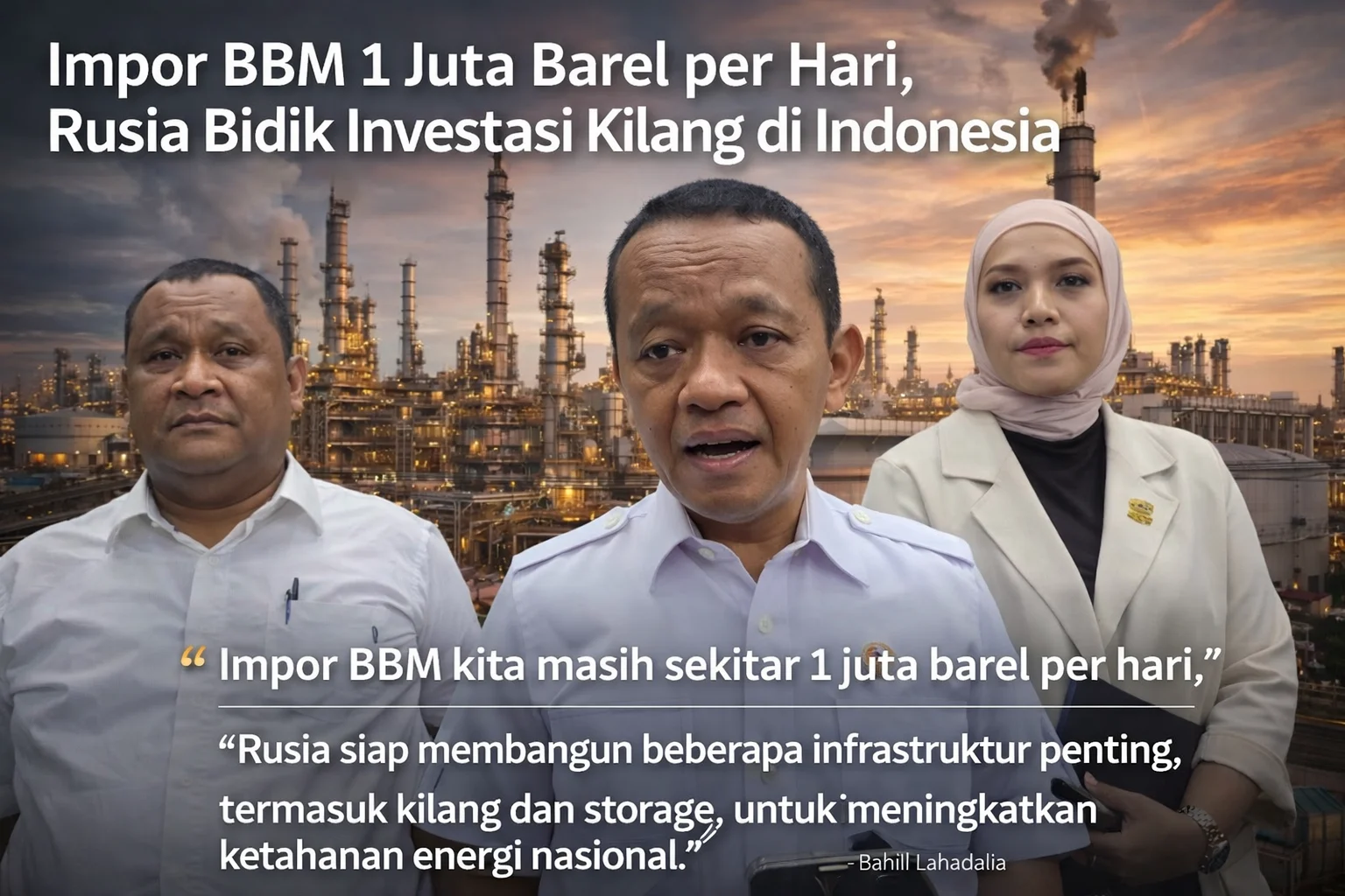 Jakarta – Ketergantungan Indonesia terhadap impor bahan bakar minyak (BBM) masih tinggi, mencapai sekitar 1 juta barel per hari. Pemerintah kini membuka peluang kerja sama strategis dengan Rusia, tidak hanya untuk pasokan minyak mentah, tetapi juga pembangunan kilang domestik guna memperkuat ketahanan energi nasional.