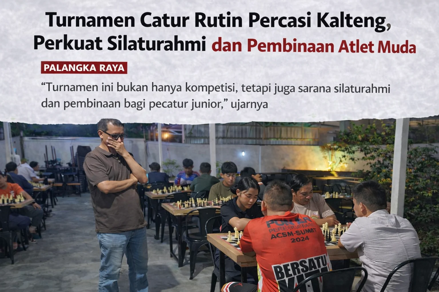 PALANGKA RAYA – Pengurus Provinsi Persatuan Catur Seluruh Indonesia (Percasi) Kalimantan Tengah bersama Shant Chess Club kembali menggelar turnamen catur rutin sebagai bagian dari pembinaan atlet sekaligus memperkuat silaturahmi antarpecatur.