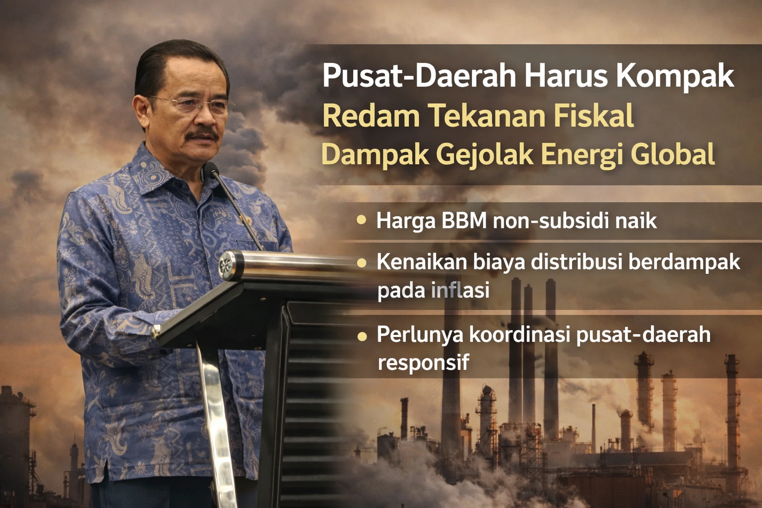 Dalam konteks global yang tidak pasti, ia mengingatkan bahwa koordinasi pusat-daerah menjadi kunci untuk menjaga stabilitas ekonomi dan kepercayaan publik terhadap pemerintah.