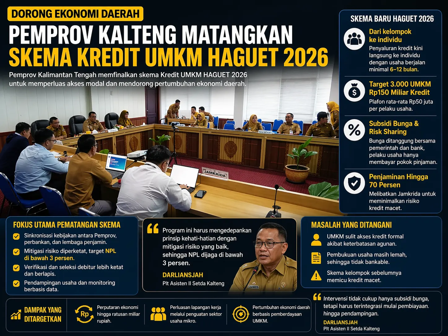 PALANGKA RAYA — Pemerintah Provinsi Kalimantan Tengah mulai memfinalkan skema Kredit UMKM HAGUET 2026 dengan pendekatan baru: memperluas akses modal, tetapi dengan kontrol risiko yang lebih ketat. Program ini diposisikan bukan sekadar bantuan pembiayaan, melainkan instrumen strategis untuk mendorong pertumbuhan ekonomi daerah berbasis usaha mikro.