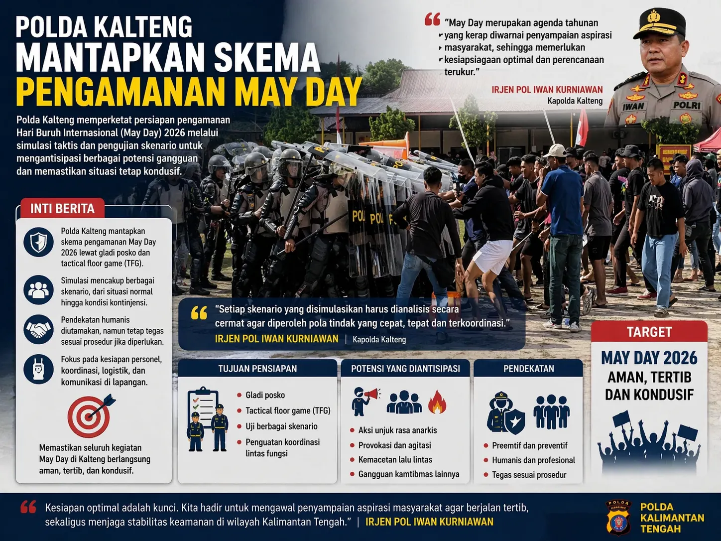 Kapolda Kalteng, Irjen Pol Iwan Kurniawan, menegaskan bahwa May Day merupakan agenda tahunan yang berpotensi memicu mobilisasi massa sehingga membutuhkan perhatian khusus aparat.
