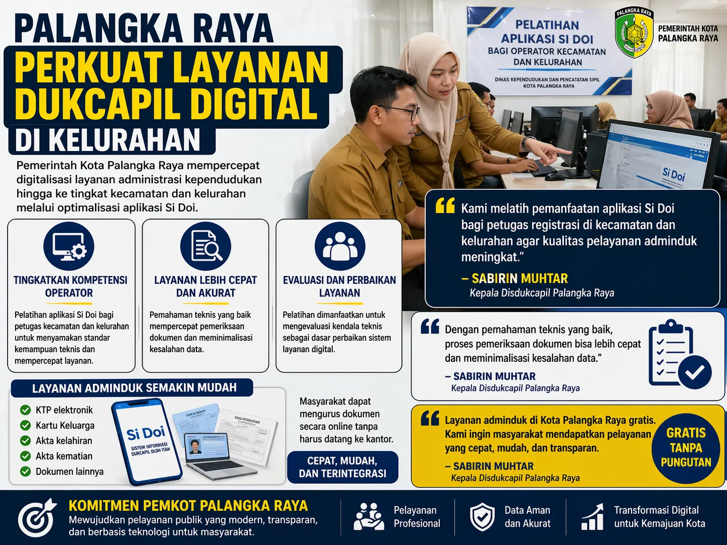 Kepala Dinas Kependudukan dan Pencatatan Sipil (Disdukcapil) Palangka Raya, Sabirin Muhtar, menegaskan penguatan kapasitas operator menjadi kunci utama dalam digitalisasi layanan tersebut.
