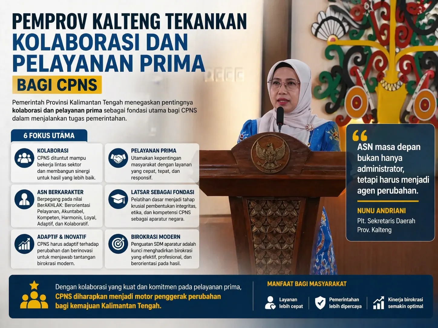 Dengan penekanan pada kolaborasi dan pelayanan prima, CPNS diharapkan mampu menjadi motor penggerak perubahan dalam meningkatkan kualitas pelayanan publik di Kalimantan Tengah.
