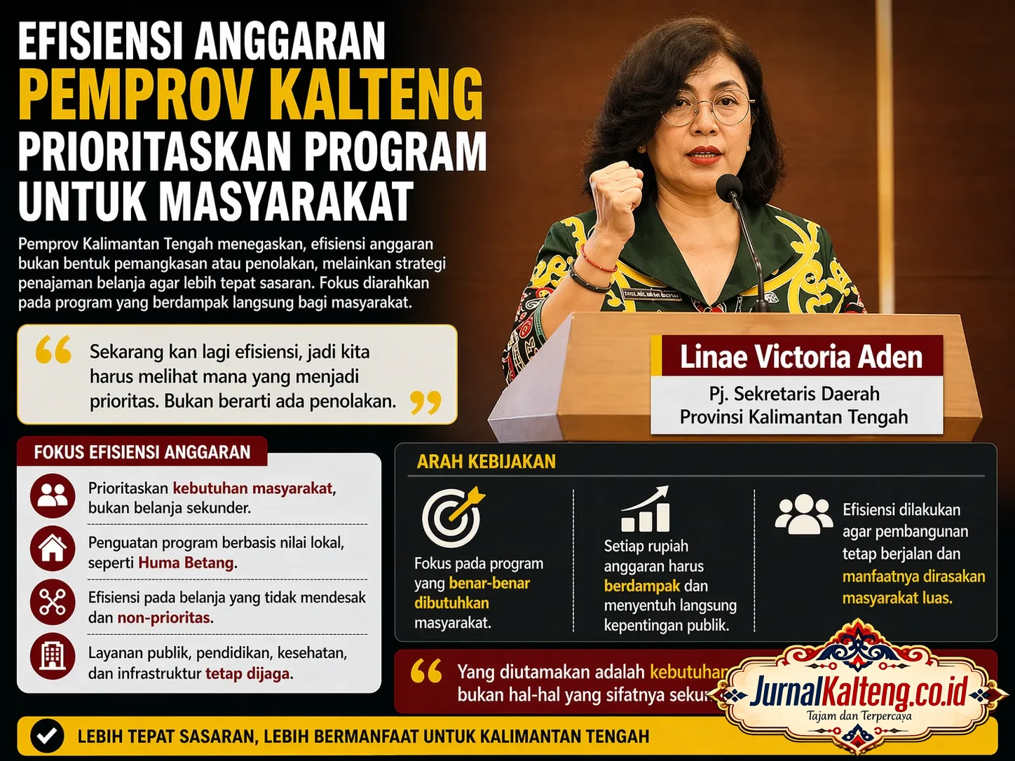 Pelaksana Harian Sekretaris Daerah Kalteng, Linae Victoria Aden, meluruskan isu yang berkembang terkait penolakan anggaran tertentu. Ia menegaskan, langkah yang diambil murni bagian dari penyesuaian fiskal di tengah kebijakan efisiensi.