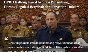 PALANGKA RAYA — DPRD Kalimantan Tengah menegaskan komitmennya mengawal aspirasi penambang rakyat dengan mendorong regulasi yang memberikan kepastian hukum sekaligus melindungi keberlangsungan ekonomi masyarakat. Komitmen tersebut mengemuka dalam audiensi antara Selengkapnya