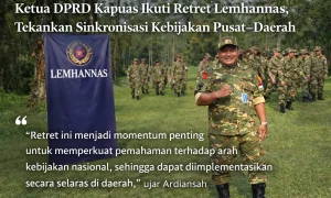 KUALA KAPUAS — Ketua DPRD Kabupaten Kapuas, Ardiansah, mengikuti retret nasional yang diselenggarakan Lembaga Ketahanan Nasional (Lemhannas) sebagai bagian dari penguatan kapasitas kepemimpinan dan sinkronisasi kebijakan pusat dan daerah. Kegiatan Selengkapnya