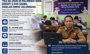PALANGKA RAYA — Pelaksanaan Tes Kemampuan Akademik (TKA) jenjang Sekolah Dasar (SD) tahun 2026 di Kota Palangka Raya diikuti sebanyak 3.935 siswa kelas VI. Ujian tersebut dijadwalkan berlangsung pada 20 Selengkapnya